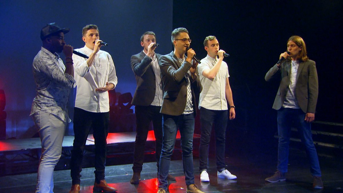 The Sons of Pitches perform their medley of Toxic, Annie’s Song and Waiting All Night in the grand final of The Naked Choir.