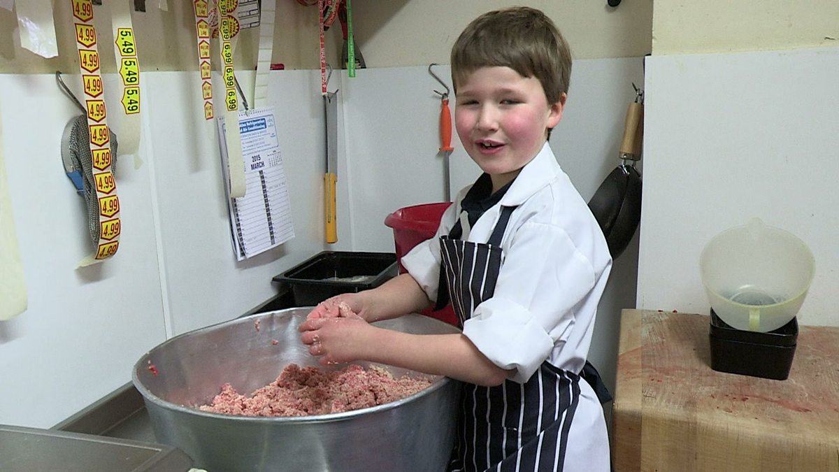 Mae Rhys yn penderfynu trefnu barbeciw ar gyfer ei deulu a'i ffrindiau. Fe ei hun fydd yn paratoi'r byrgers a'r selsig! Butcher's son Rhys arranges a barbecue and make the sausages himself!