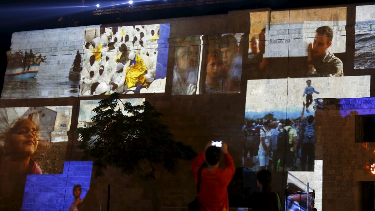 (Picture credit: People take pictures of projections showing images of migrants on the facade of St James Cavalier during a rehearsal of the opening ceremony of the 2015 Valletta Summit on Migration in Valletta - EU leaders are to meet counterparts from Africa and the Middle East at a summit in Malta on November 11-12 to discuss ways to handle unprecedented refugee and migrant flows - 10/11/2015 Reuters)
