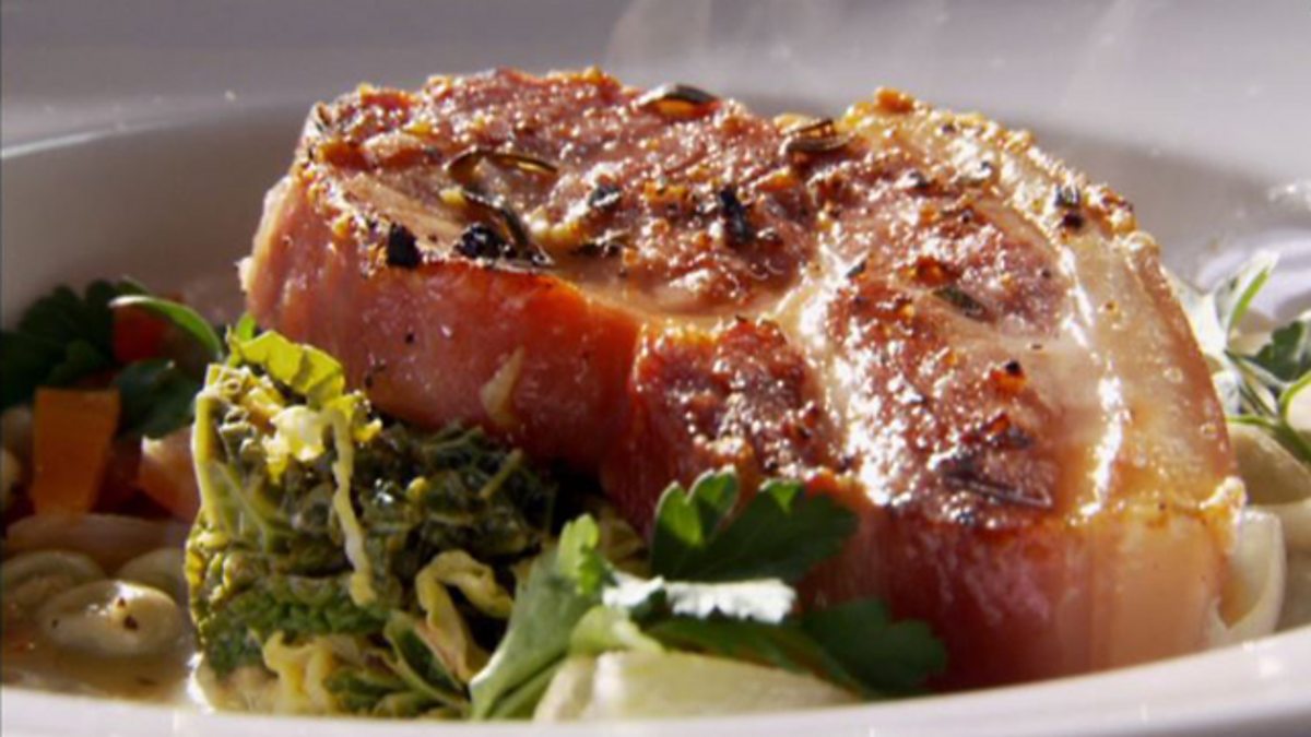 Bean Ragout with Cabbage & Bacon Chops prepared by Éamonn Ó Catháin