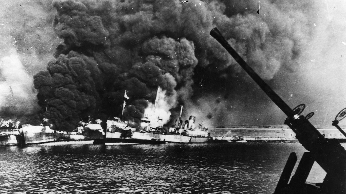 (Photo: Seventeen Allied ships go up in flames in Bari, Italy, after a raid by German bombers on 2 December 1943. Credit: Keystone/Getty Images)