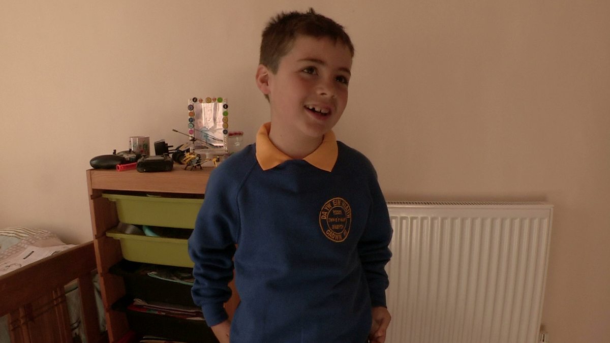 Ar ei Ddiwrnod Mawr mae Mabon yn barod i fynd i'w ysgol newydd am y tro cyntaf. On his Big Day, Mabon goes to his new school for the first time - Ysgol Twm o'r Nant.