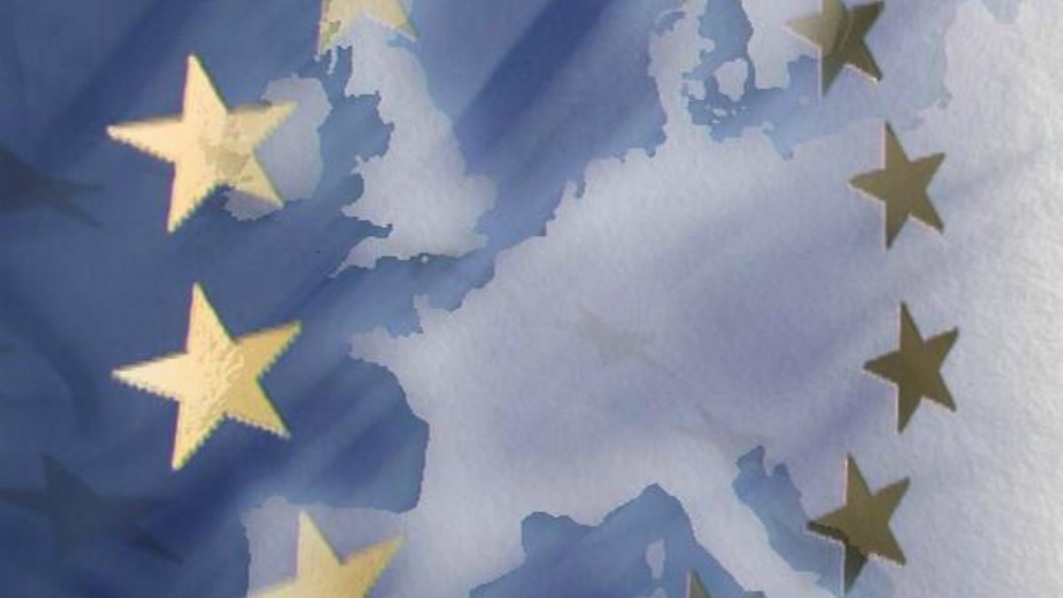 Picture: EU / EC Flag logo on a map of Europe