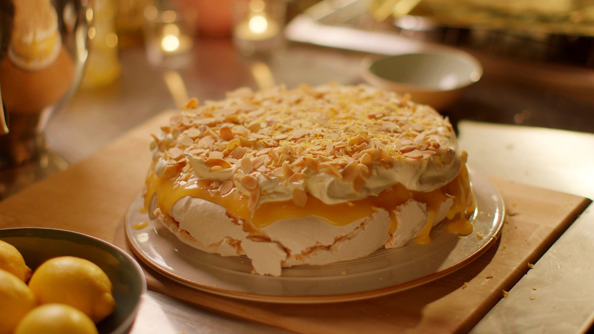 Ever since my first pav in How To Eat, I have been something of a pavaholic. For me, acidity is key. I never understood why anyone would pile sweet fruit on top of something that is essentially and dreamily a cross between a marshmallow and a meringue. So naturally, a lemon pavlova made perfect sense. I had the idea yes, really from the actor Michael Sheen. This didn¹t come in the form of a personal tip, I should admit. I saw him create a great pile of lemony pavs on BBC Two¹s The Great Comic Relief Bake Off, and it inspired me. Diolch Michael (if I may).