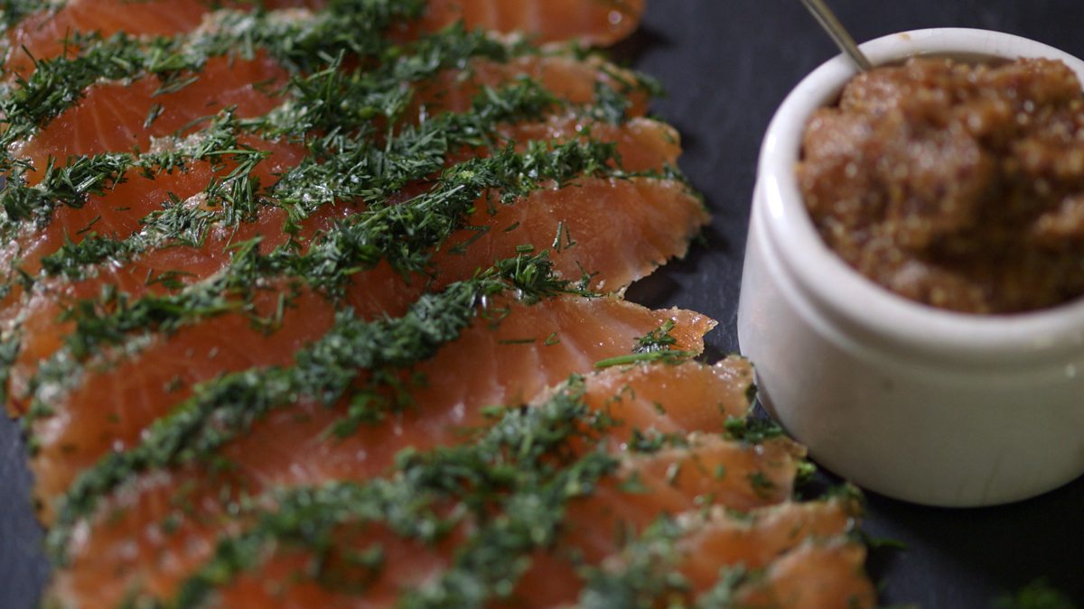 Salmon gravadlax with Champagne mustard