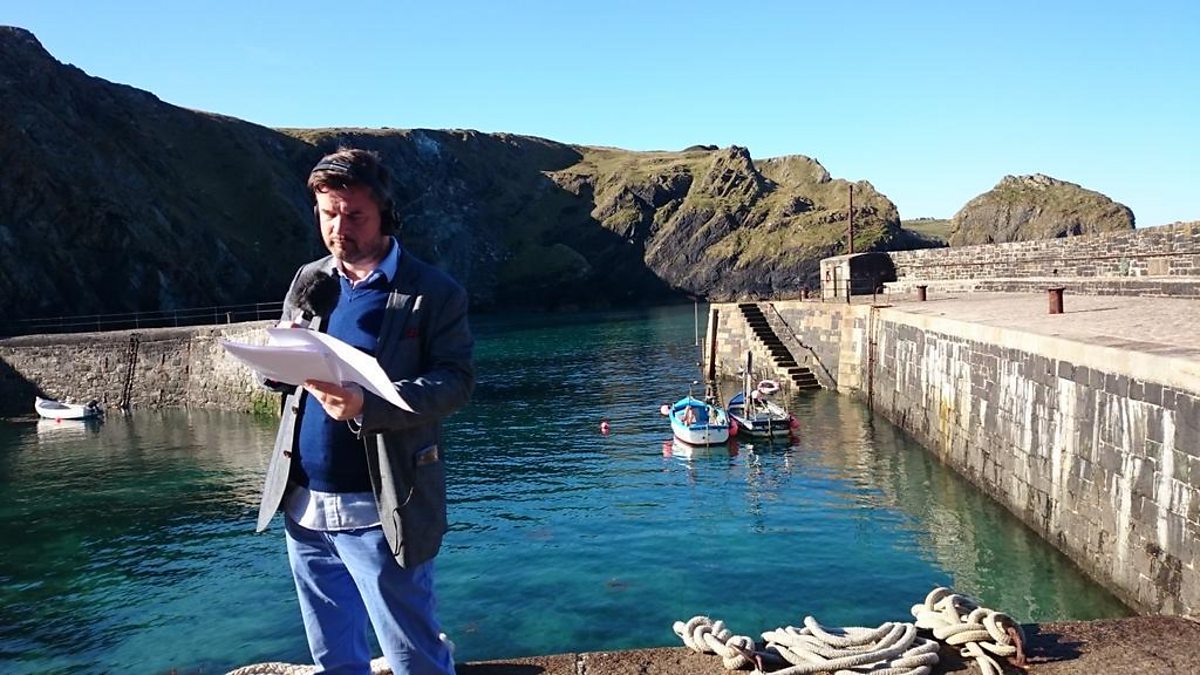 Petroc Trelawny broadcasts live from Mullion Harbour in Cornwall
