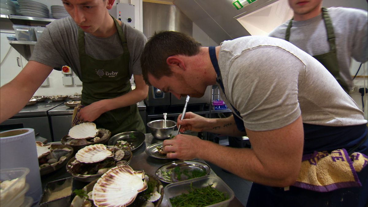 Two semi-finalists begin the service of their lives in the Michelin starred Treby Arms, the kitchen of 2012 Professional MasterChef joint winner, Anton Piotrowski.