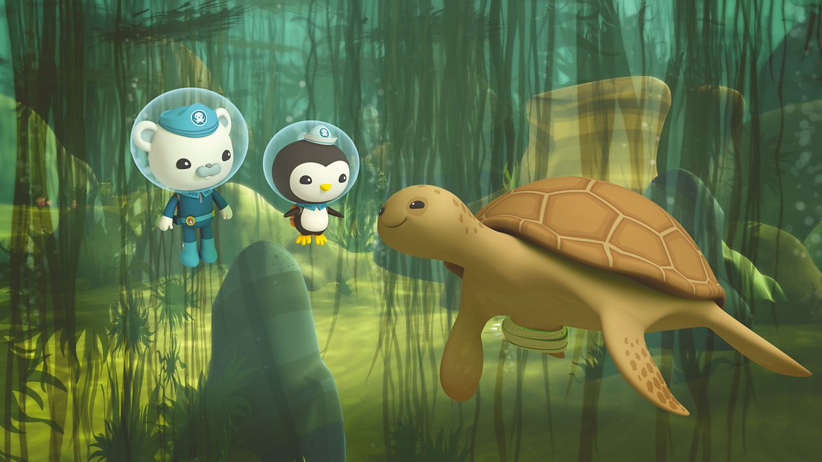 Mae'r Octonots yn canu cân am y crwban pendew. The Octonots sing a song about the loggerhead sea turtle.