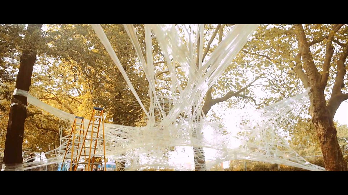 This summer if you had gone to Bute Park in Cardiff you would have seen a web like structure, the Mirgration Art Installation, made of rolls of tape.
