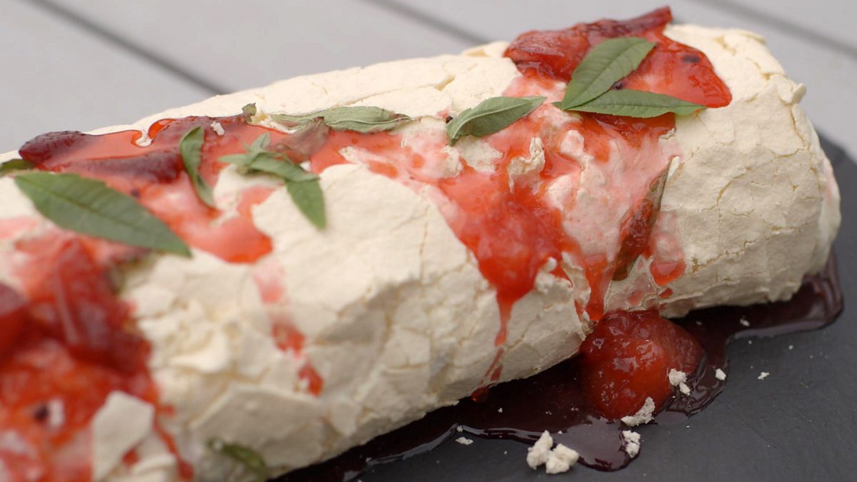 Lemon and plum meringue roulade