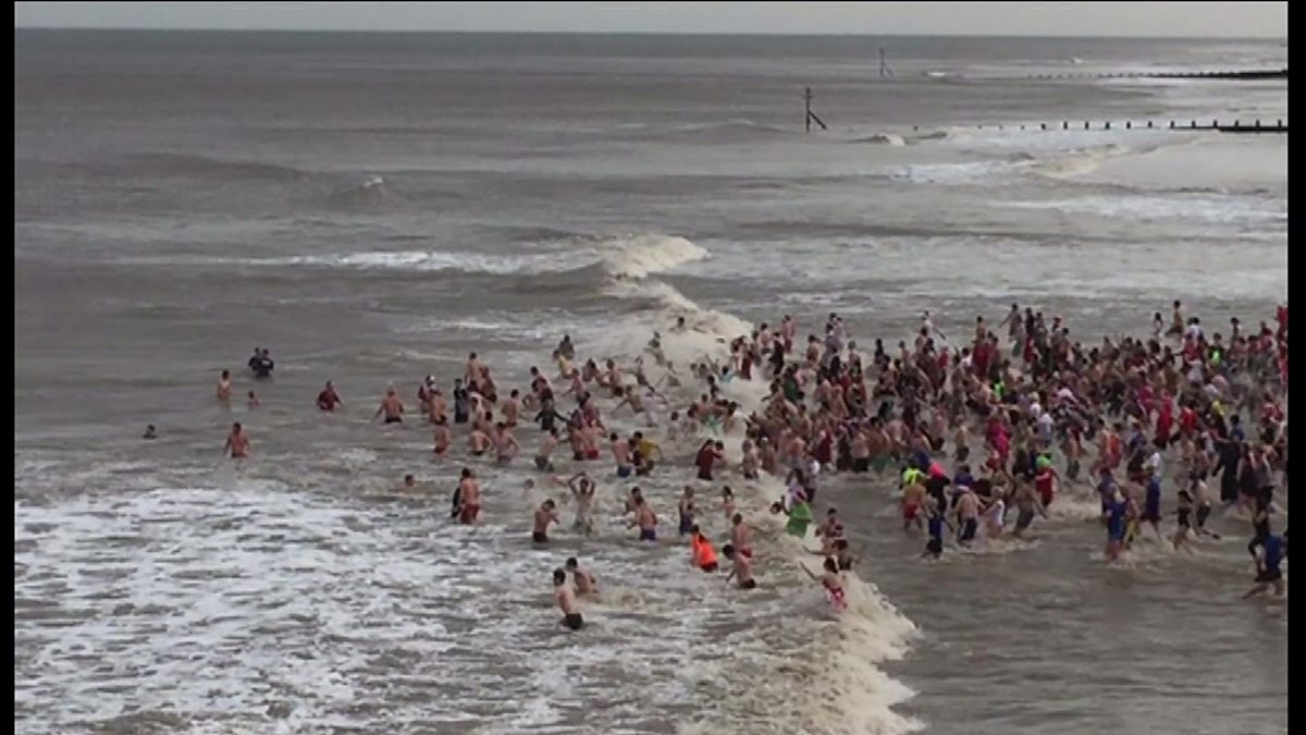 About 300 people took a dip off the coast at Cromer on Boxing Day to raise more than £2,000 for charity.
