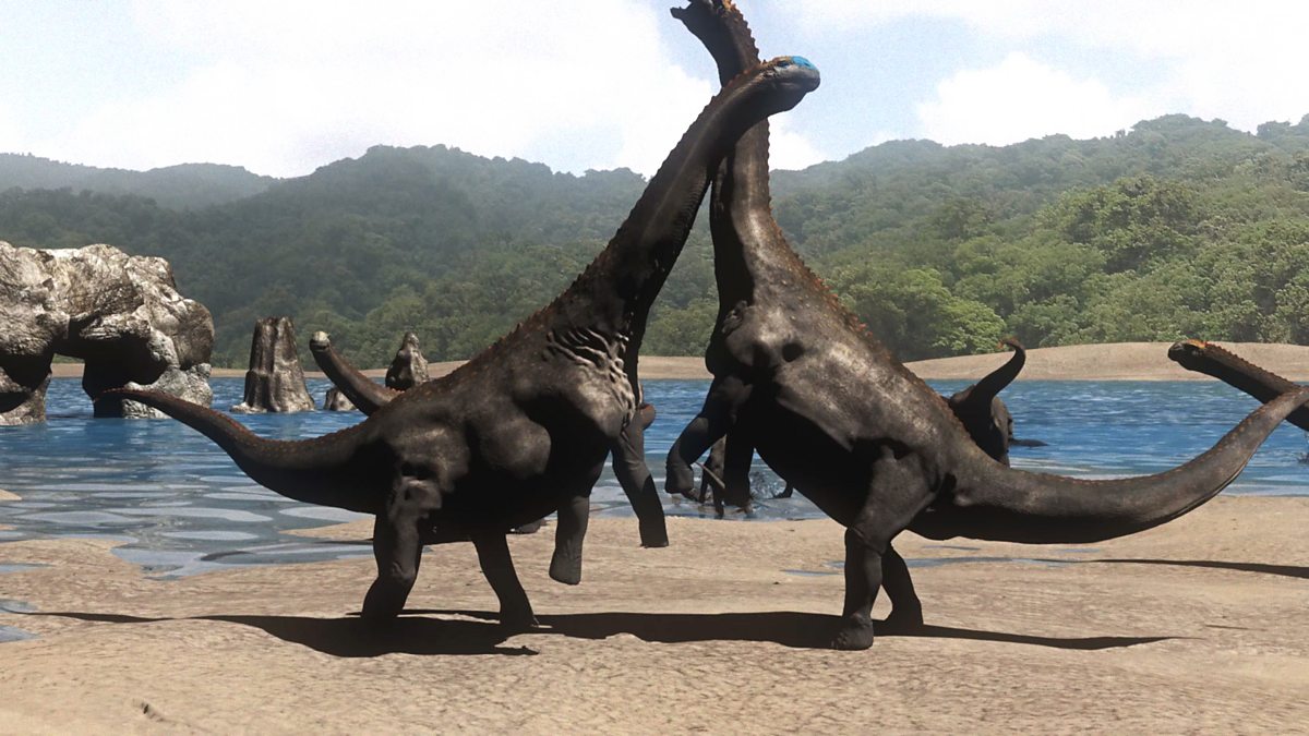 Edinburgh palaeontologists, Tom Challonds and Steve Brusatte, find 170 million year old sauropod trackway on Skye shores © BBC WW