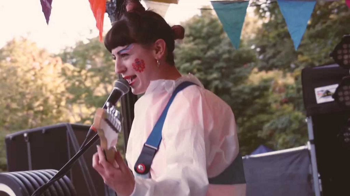 Radio 1 DJ Huw Stephens sets the scene and presenter Bethan Elfyn introduces Welsh band HMS Morris onto the bandstand stage at Festival No6.