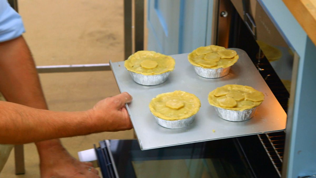 The Sport Relief bakers are following instructions to add a football design to their pies, some with more success than others.