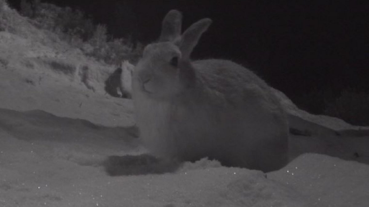 The Uk's only arctic mammal, the countain hare, feeding in the moonight.