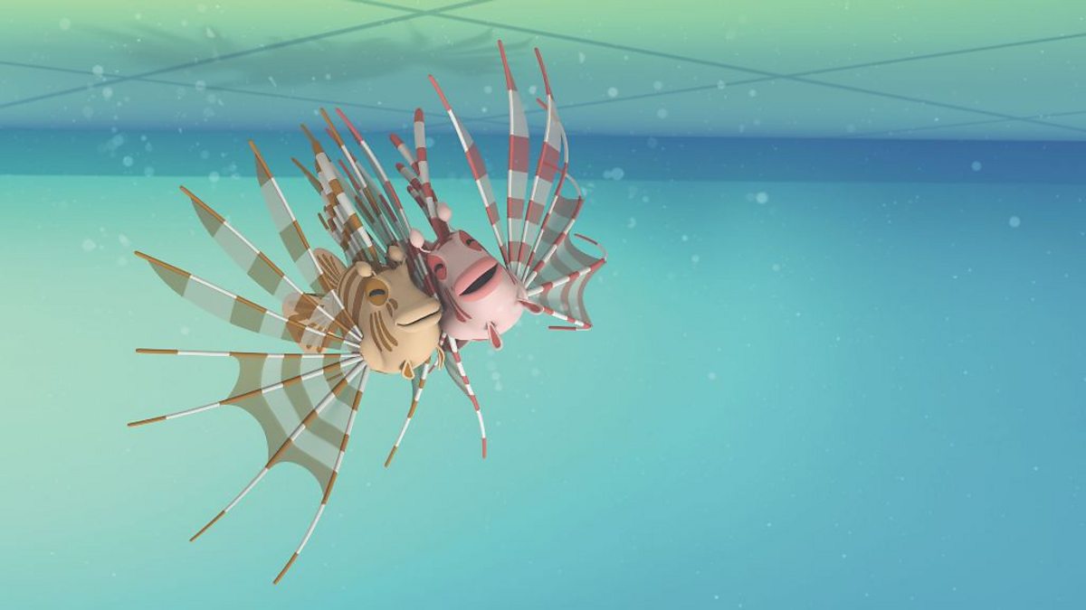 Mae'r Octonots yn canu cân am ddreigiau'r môr. The Octonots sing a song about the lionfish.