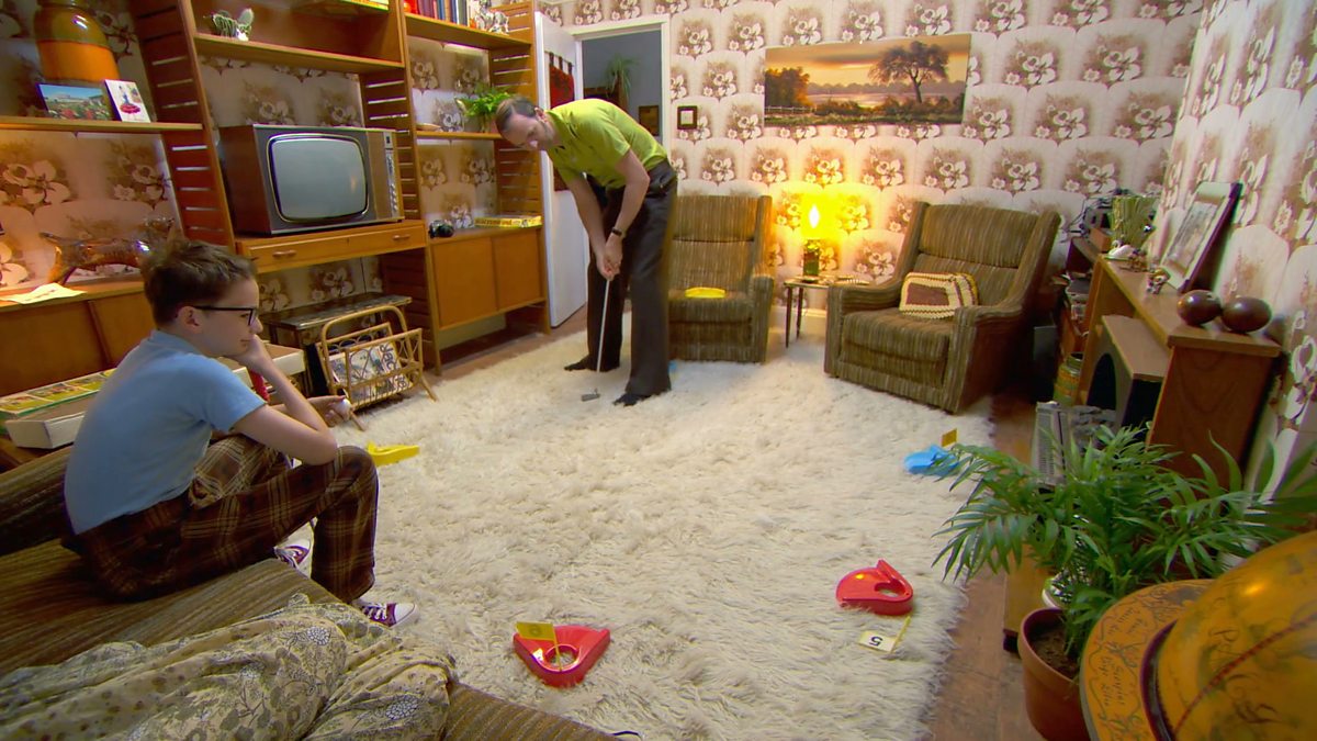 It’s 1972 and Rob’s home with a popular family game – indoor golf. After a power cut leaves them in the dark, Steph joins in with only candles to light the heavily carpeted green.