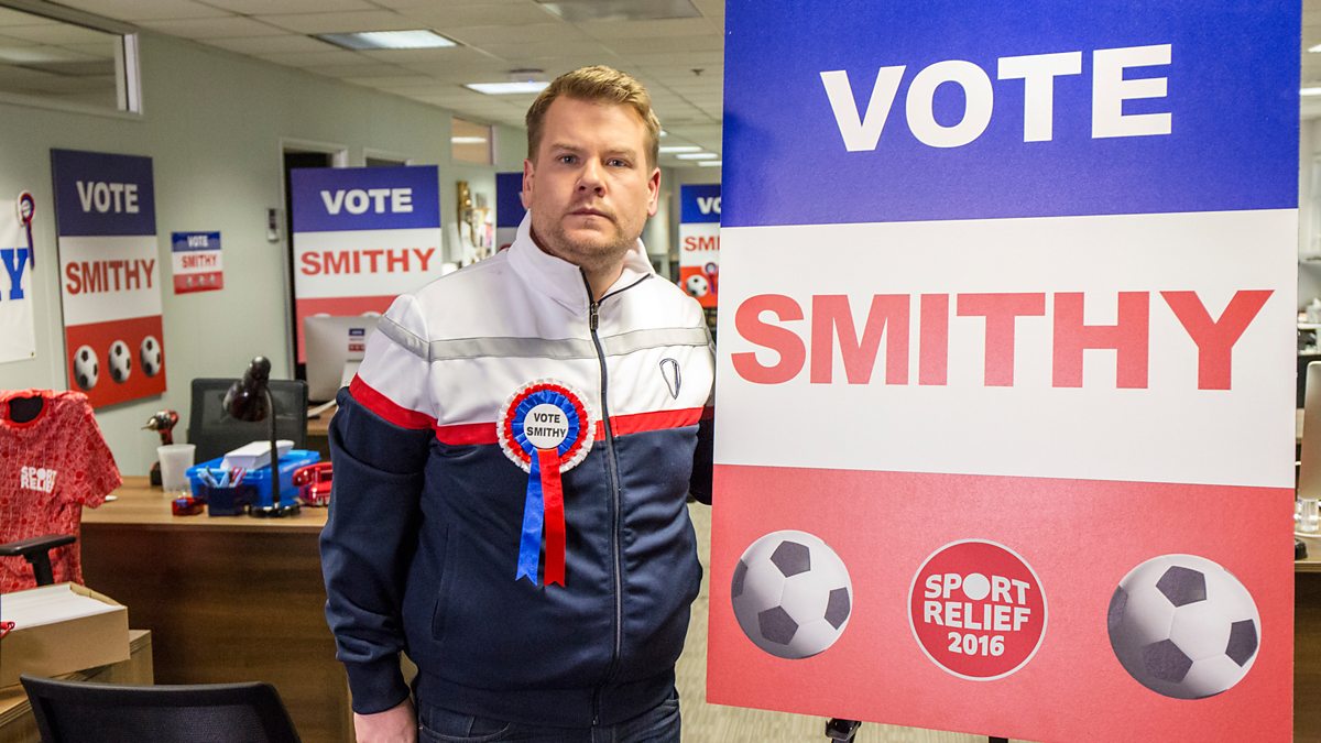As part of Sport Relief 2016 James Corden’s character Smithy is making a big comeback, with the help of some very special guests, and announces his intention to run for Fifa president ahead of the official elections later this month.