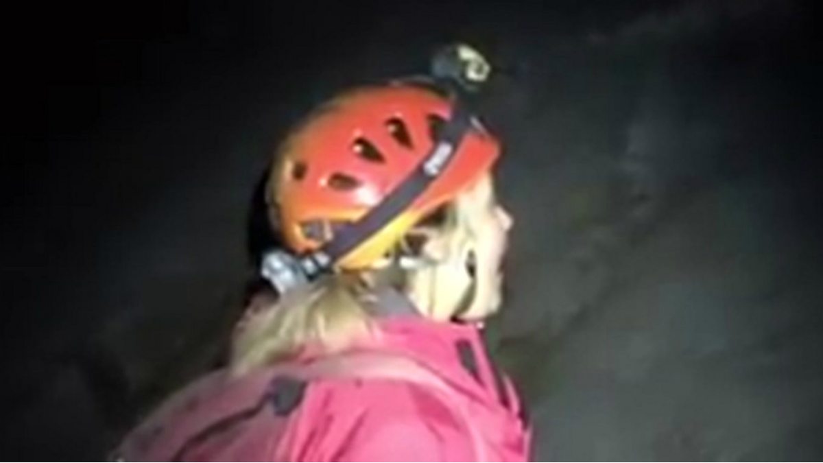 Chester teacher Claire Palmer sings Ave Maria in a cave on a school trip to North Wales.