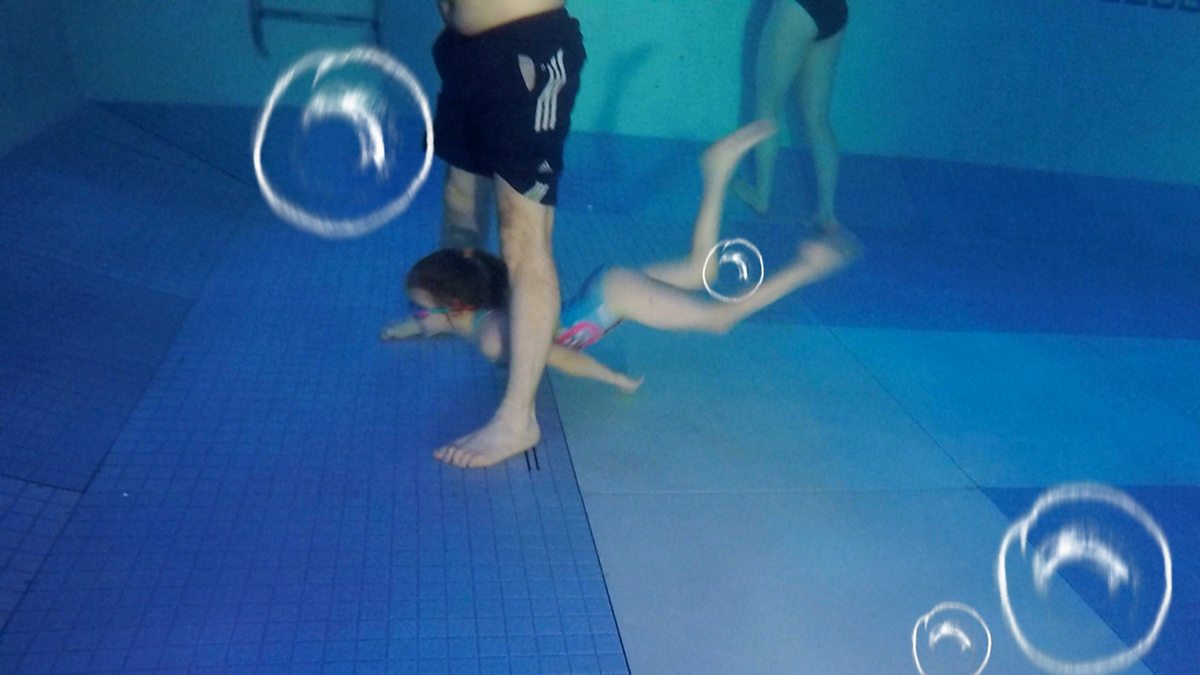 Heddiw, mae'r teulu yn mynd ag Elis i nofio am y tro cyntaf erioed ac yn cael hwyl a sbri wrth sblasio yn y dwr. The family take Elis swimming for the first time and have a great time.
