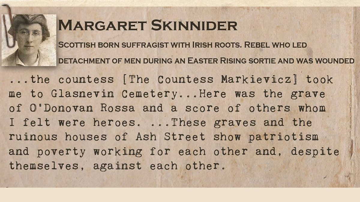 The experiences of Margaret Skinnider as she witnessed them in 1916.