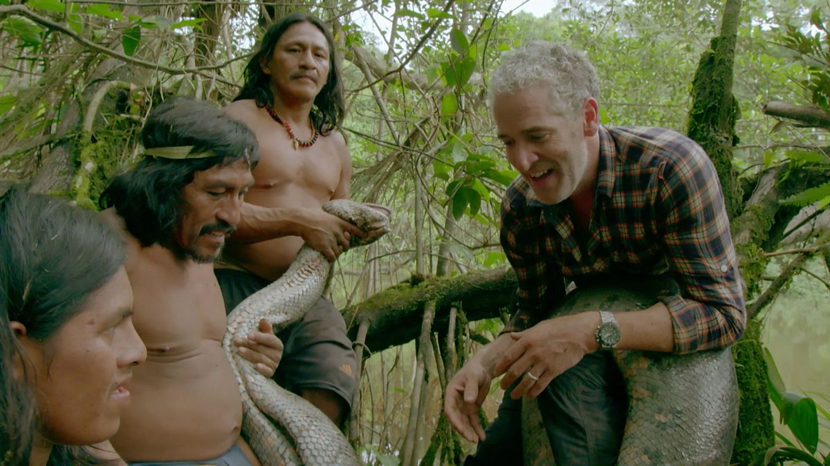 Now as the threats on their ancestral land increase through oil exploitation, they are working with a scientist to combine their skills at anaconda catching with scientific research to check the health of the anacondas.