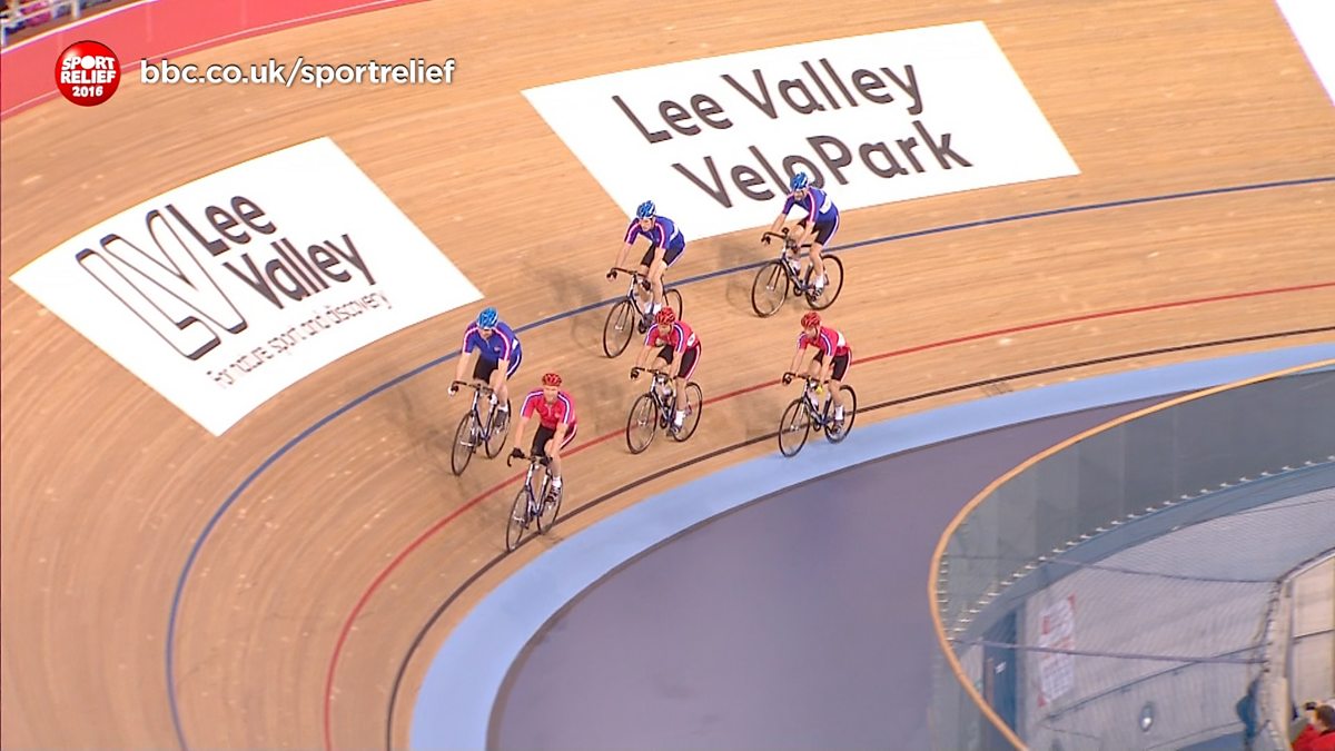 Team Flintoff compete against Team Redgrave at the Velodrome.
