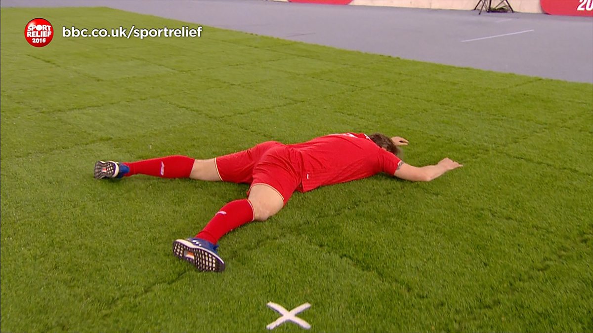 John Bishop steps up for his Dizzy Penalty shoot-out.
