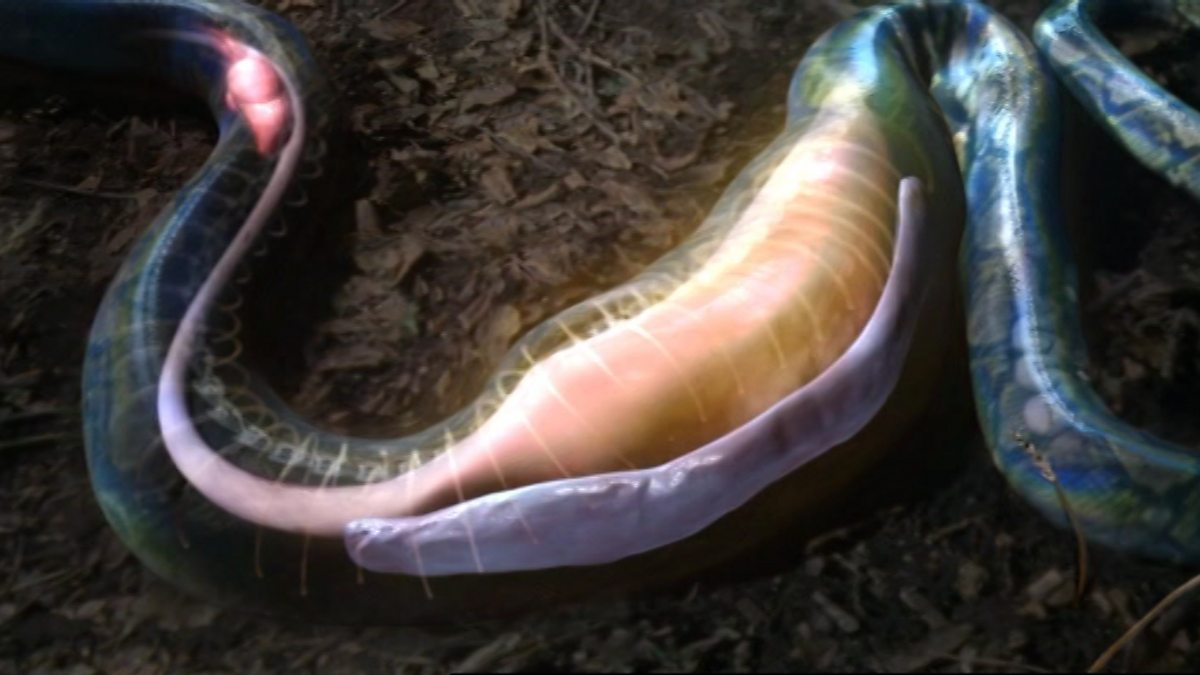 Graphics reveal the internal processes used by a python to swallow huge prey