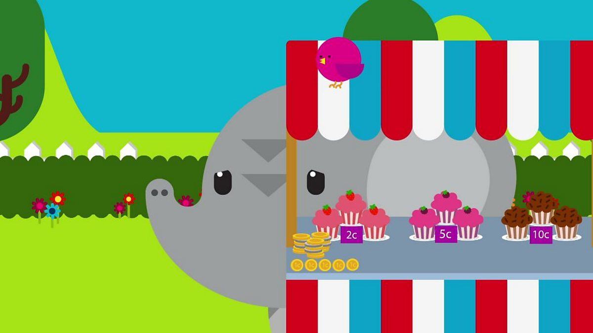 Mae Plwmp wedi agor stondin gacennau ac mae ei ffrindiau wedi heidio draw i brynu'r cacennau blasus. Plwmp has trouble counting money when he tries to buy some cakes.