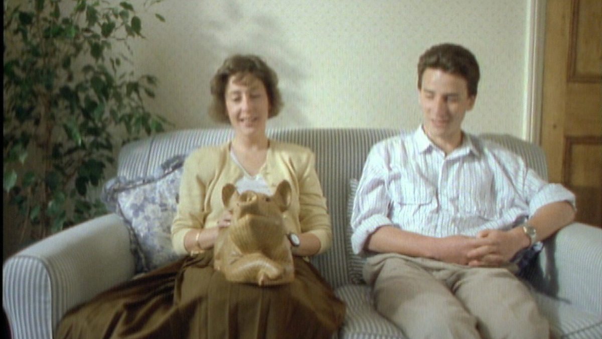 A look at couples with incompatible taste: Matt cannot abide Marie Louise's large wooden pig in the living room, while Sue has quietly removed Gary's mug tree. (1992)