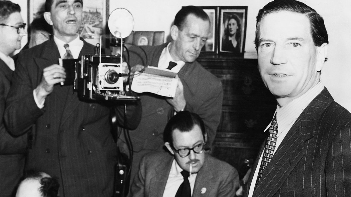 Photo: In November 1955, Kim Philby (right) denies to journalists that he is the Third Man, after the defection of two other Cambridge spies to Moscow. (Credit: Keystone/Hulton Archive/Getty Images)