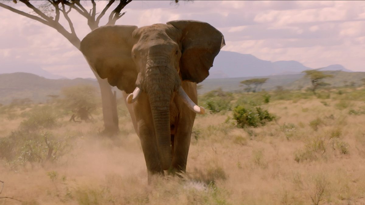 Cameraman Bob Poole is charged by a musth bull elephant during filming in Samburu National Reserve, Kenya.