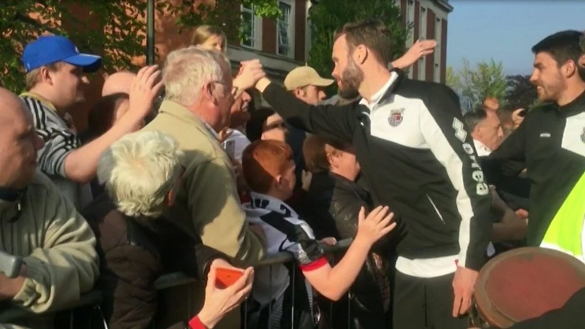 Grimsby Town player meet their fans and sign autographs at the Town Hall.