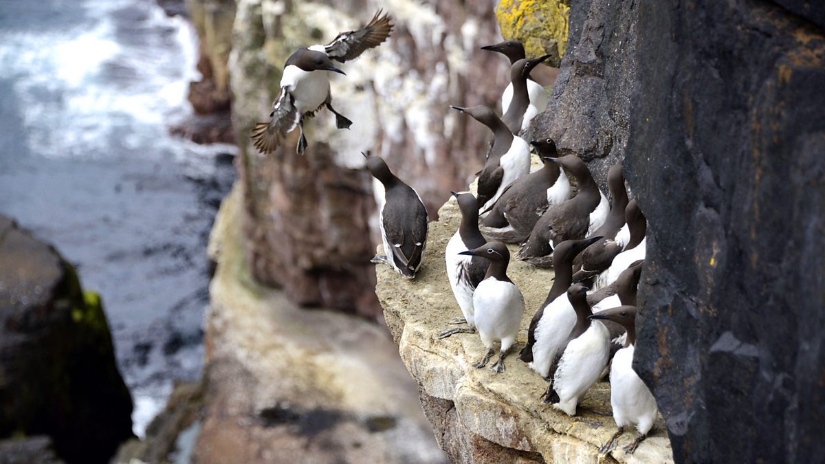 Handa Island off the North West coast of Scotland is recognised as globally important for its breeding seabird colony. The sandstone cliffs rise dramatically from the Atlantic and each summer they are filled with breeding pairs of puffins, razor bills, kittiwakes and fulmers. But, it’s the guillemots that dominate this colony, with over 30,000 breeding pairs. The team was granted unprecedented access to film the wildlife here, the ambition was to capture the guillemot’s story from egg to chick including the finale... a heart stopping leap from 400 feet.