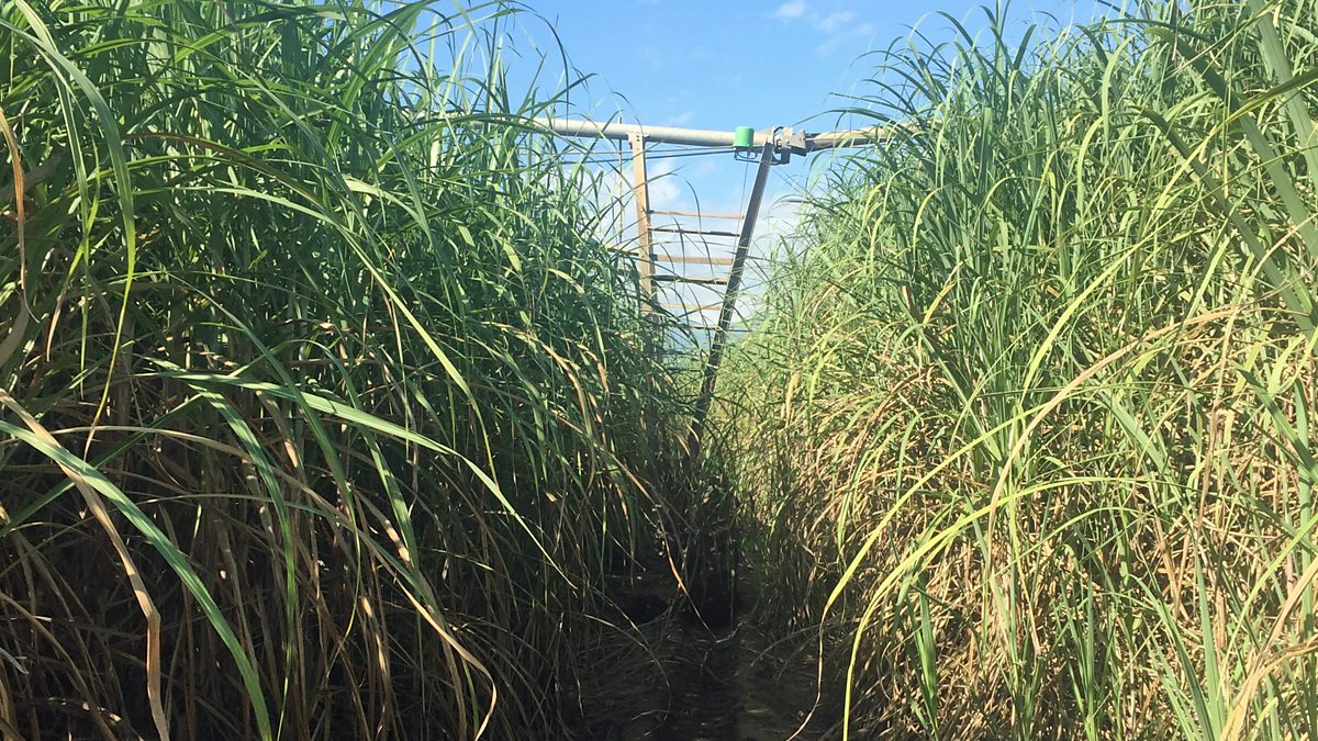 Luca Desideri, Phata’s farm manager, shows reporter Charlotte Ashton around the four metre high sugar cane fields
