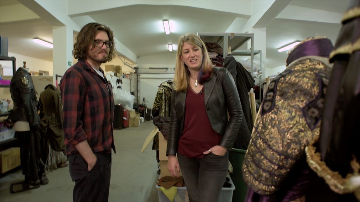 Tom Burke gives a tour of the costume department with costume designer Hayley Nebauer.