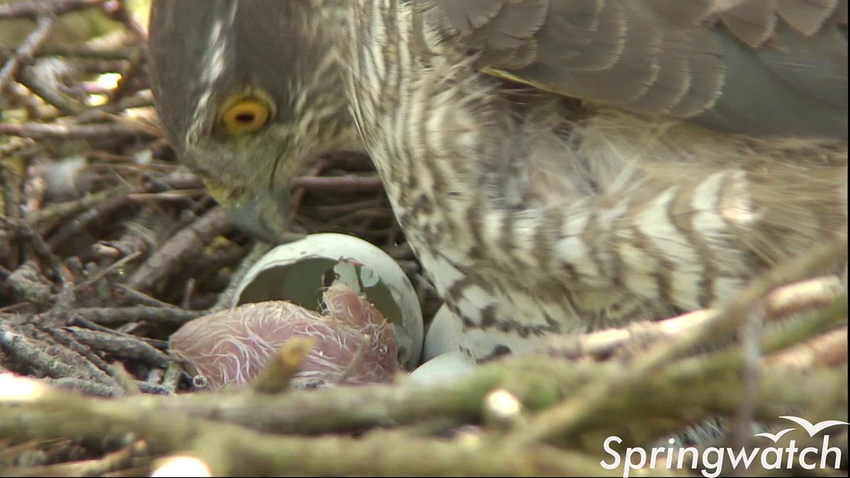 Sparrowhawk chicks first feed