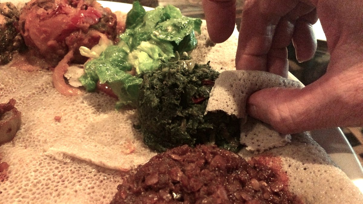 We start at Lalibela, an Ethiopian restaurant in North London where experts in dining etiquette and history join us to eat a feast with their hands.
