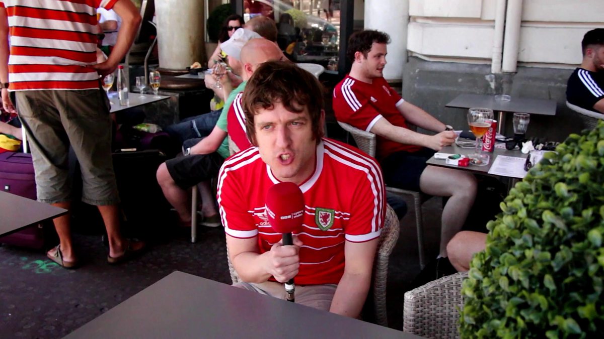 Elis sums up his emotions after Wales' 3-0 win against Russia and meets some Wales fans celebrating their success.