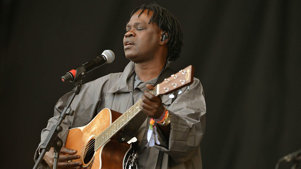 Baaba Maal takes the afternoon crowd on a journey with his Pyramid Stage performance.