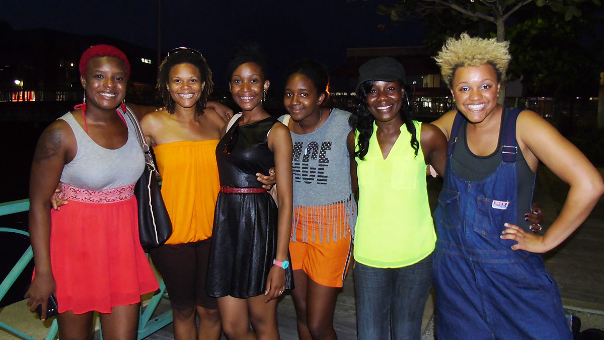 (Photo: Gemma with locals in Bridgetown Barbados at Crop Over Festival. Credit: BBC)