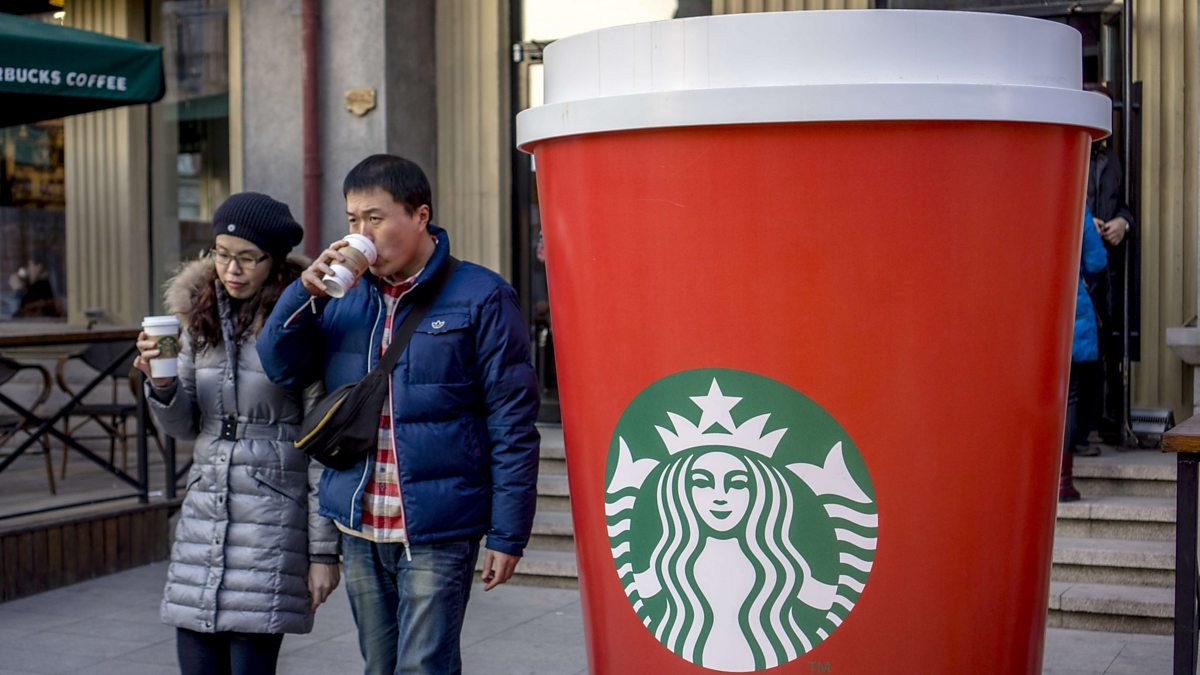 (Picture: Giant coffee cup outside a Starbucks branch in China; Credit: Zhang Peng/LightRocket via Getty Images)
