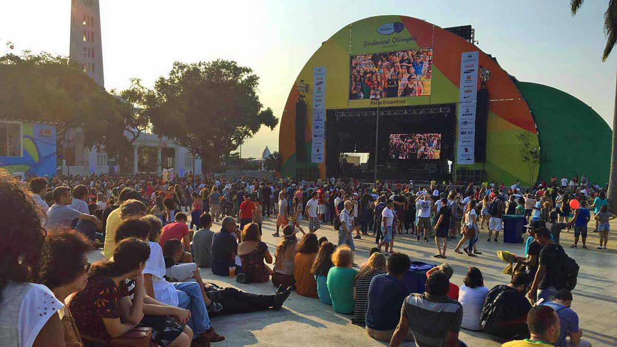 Spectators gathered round the big screen at Praca Maua, Rio Credit: BBC