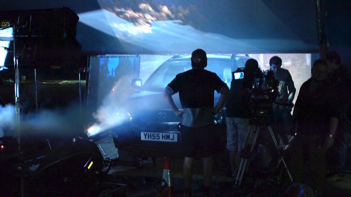 The team describe the advantages of special effects to film a car driving through a storm.