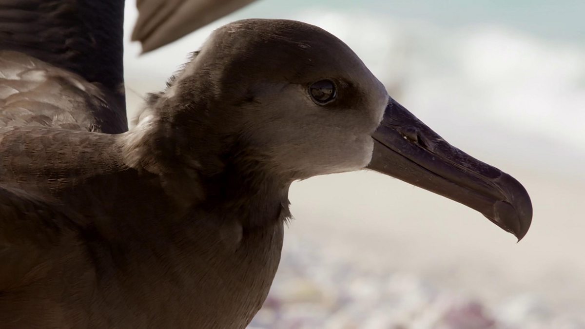 On a Pacific atoll, a young black-footed albatross must make its first flight over water. If it falters, and lands in the sea, there are hungry sharks waiting for it…