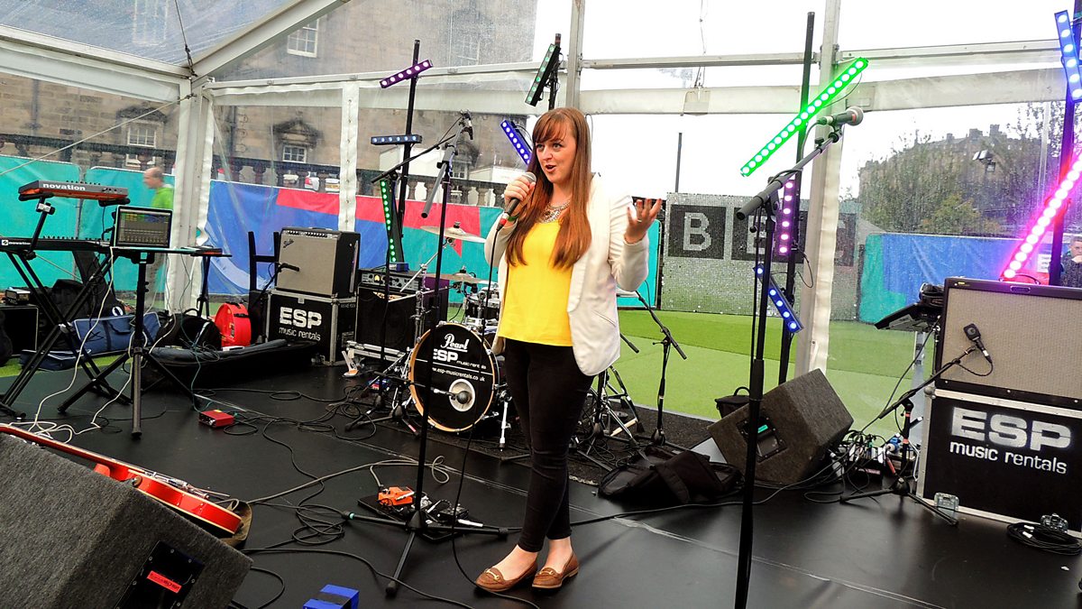 • Emma a' cur fàilt' air a h-uile duine aig Fèis Dhùn Èideann