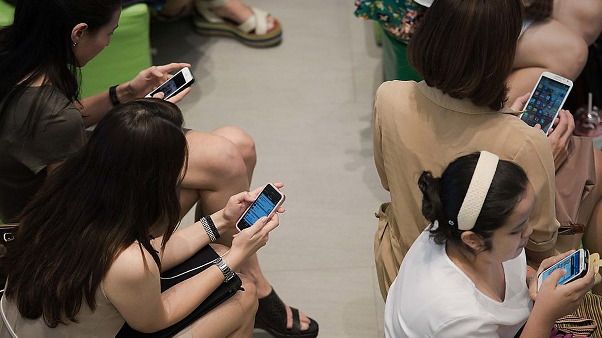 (Photo: A group of people sitting down using their smartphones © Nicolas Asfouri/AFP/Getty Images)