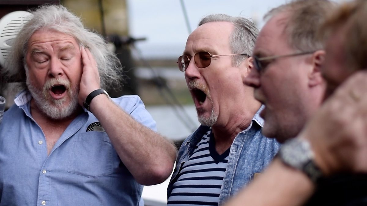 Teesside brothers The Wilson Family sing The Bay of Mexico on a replica of Captain Cook's HMS Endeavour in Whitby harbour. Recorded during Whitby Folk Week 2016.