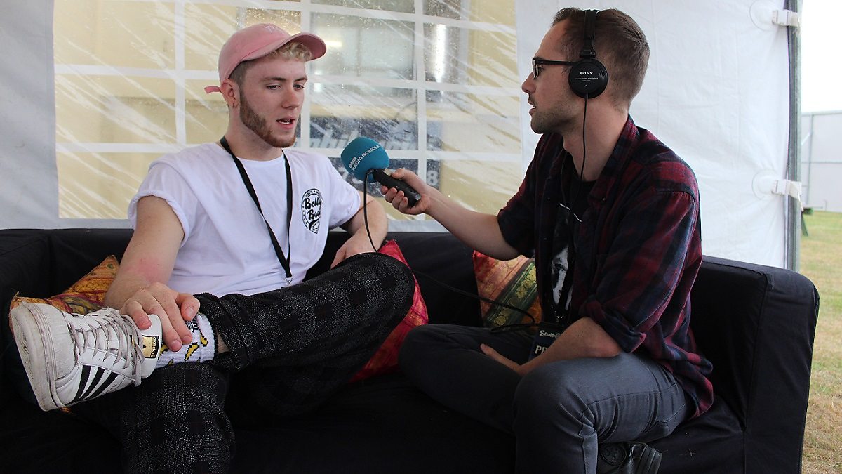Jay Lawrence chats to Norfolk boy Mullally after his performance on the Main Stage.